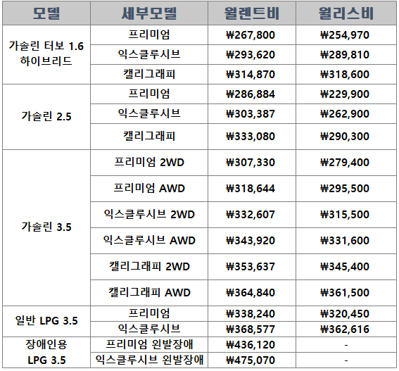 이상으로 렌트와 리스비용을 비교해 보았습니다.
