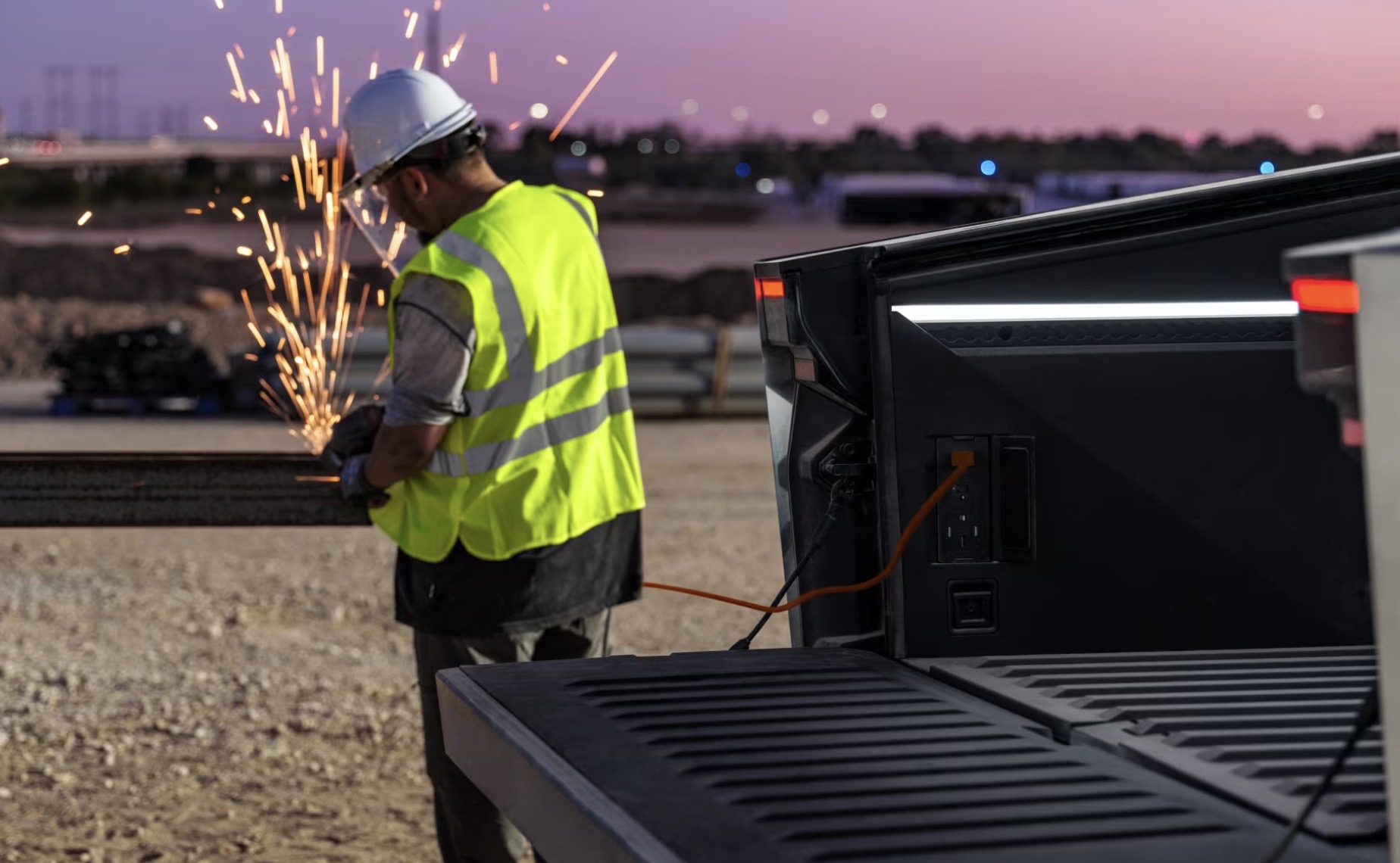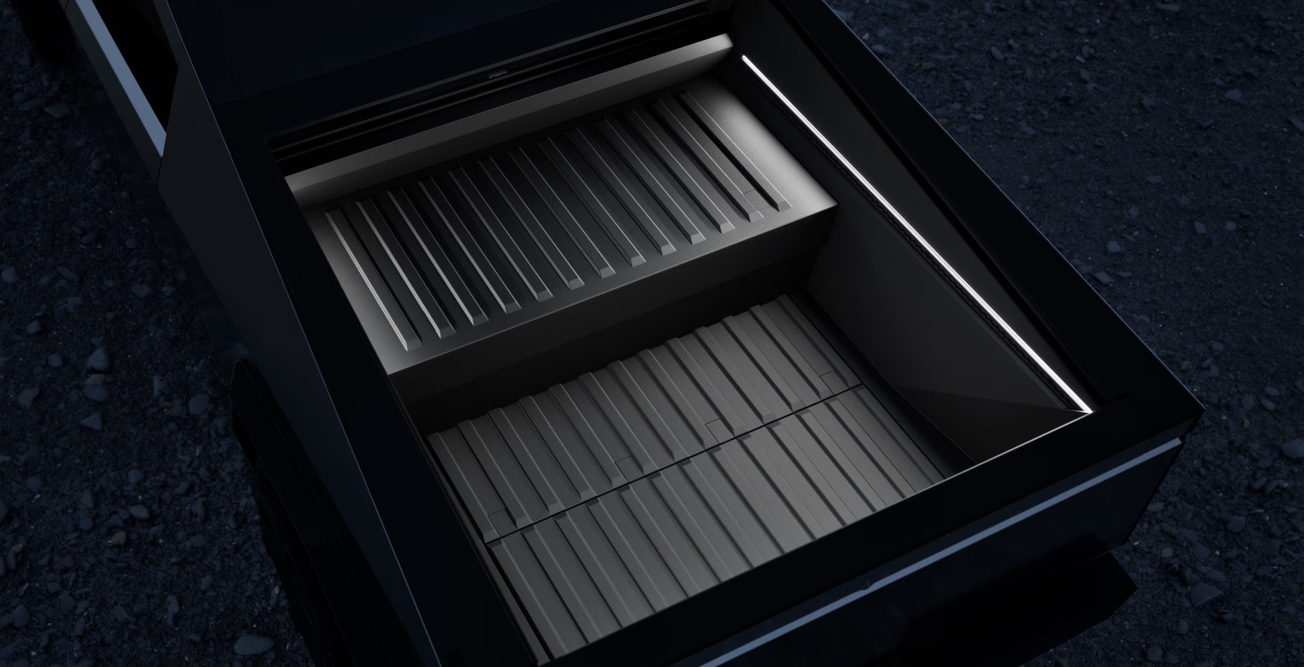 캠핑이나, 작업, 심지어 차량 간 충전에도 사용이 가능한 120v, 240v 전원 아웃렛이 적재함 후방 좌측에 내장되어 있습니다. 이미 타 양산차량에 적용이 되어 있는 사양이지만, 사이버트럭의 용도를 확장하는 면에서 필수 아이템이라 하겠습니다.