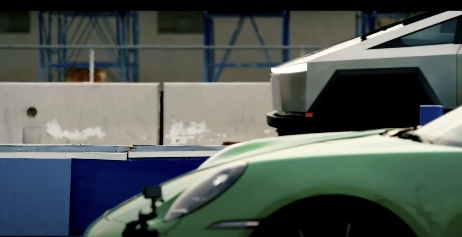사이버트럭이 911을 견인 트레일러에 실어 끌은 채로 이기는 장면입니다. 대단합니다.