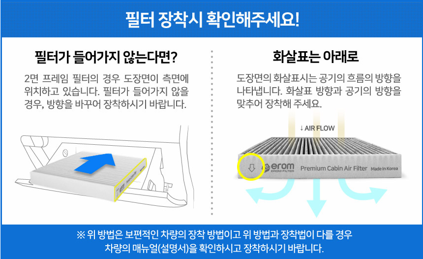 필터를 끼울 때는 화살표 방향에 주의하여야 합니다. (위 사진 참조)