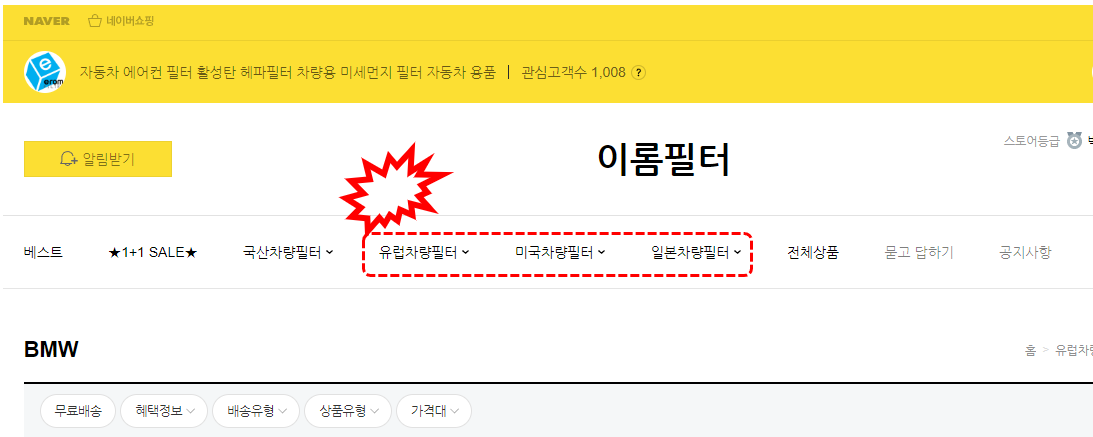 다만, 수입차의 경우는 다양하게 제품군을 확보하고 판매하는 곳이 드물어서 검색에 시간을 할애하여야 하는 불편이 있습니다. 검색하는 방법을 포함하여 필터교체에 대한 정보를 알아보았습니다.