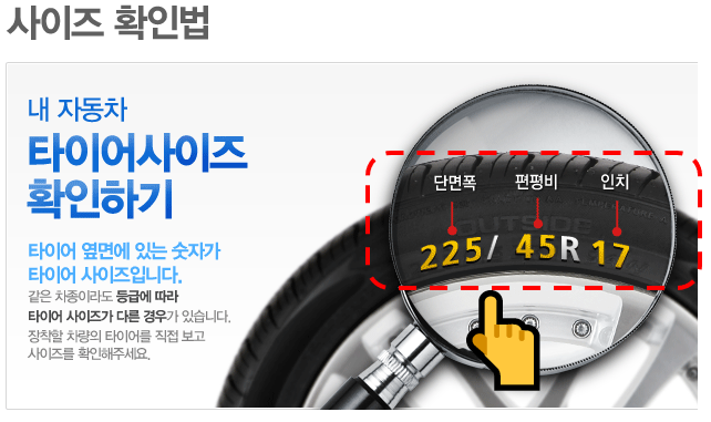 타이어 사이즈는 제대로 확인하고, 주문해야 합니다. 아래 그림에서 참고바랍니다.